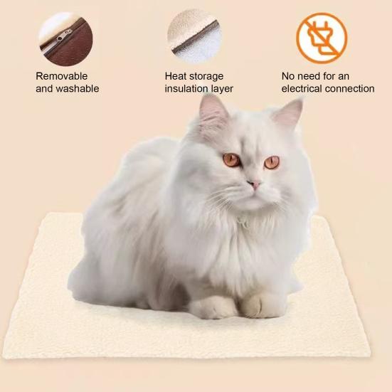 Самонагревающийся коврик для кошек Плюшевая тепловая подстилка для собак с нескользящим дном Неэлектрическая грелка для домашних животных со съемным моющимся чехлом для использования в помещении и на улице