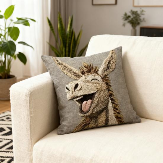 Очаровательный принт с ослом с художественной детализацией: Этот наволочка, украшенная очаровательными иллюстрациями ослов, выполненными с помощью изысканной двухмерной плоской печати в сочетании с мастерством, напоминающим вышивку, добавляет игривую причудливость и художественный колорит.. Он украшает любую комнату своим уникальным и привлекающим внимание дизайном.