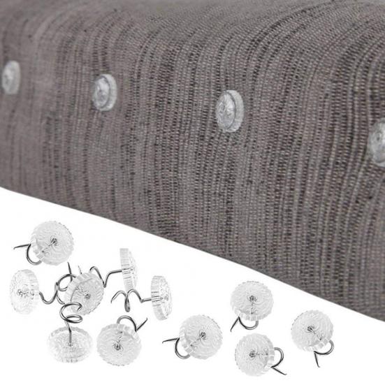 Универсальное использование для различных тканей: Эти прозрачные винты-твисты идеально подходят для закрепления обивки, чехлов на подлокотники, накидок, салфеток и оборок для кровати.. Их прозрачные головки незаметно сливаются с различными материалами, обеспечивая незаметную, но надежную фиксацию в различных бытовых применениях.