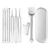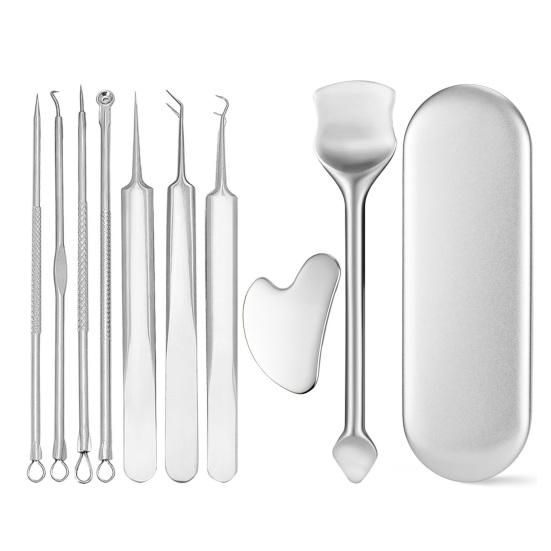 Introducing the pore cleaning tools set, a comprehensive solution for your daily facial cleansing routine. This set includes 9 high-quality stainless steel tools designed to effectively remove pimples, blemishes, blackheads, and more. The set comes with a convenient storage box for easy organization and portability.