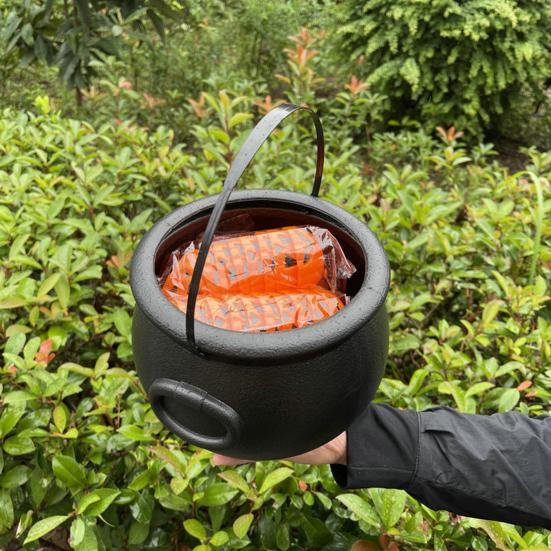 Большой ведьмин котел: Этот предмет первой необходимости для Хэллоуина размером 32 x 18 см предлагает достаточно места для хранения конфет, монет или закусок.. Конструкция веревочной ручки добавляет удобства детям во время приключений или мероприятий на жуткую тематику.