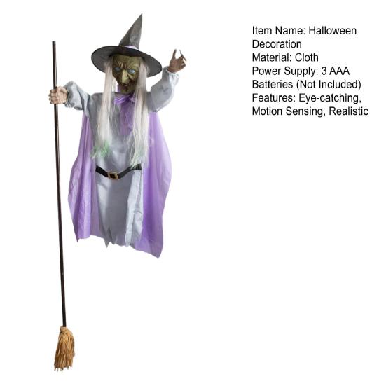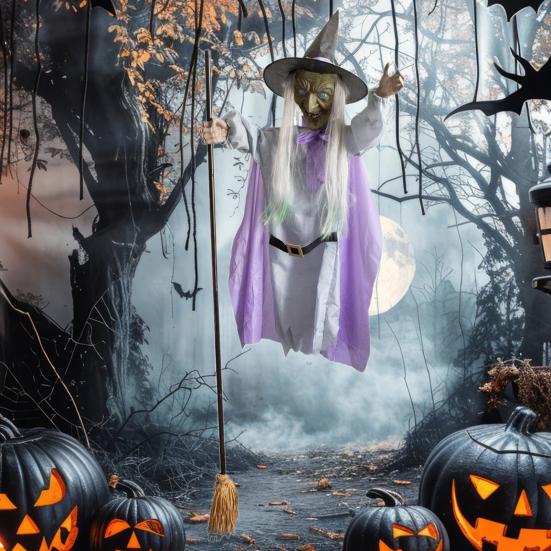 Превратите свое пространство на открытом воздухе в леденящее кровь зрелище с помощью нашего украшения на Хэллоуин — Большой летающей ведьмы! Эта жуткая ведьма не требует сборки, что делает установку легкой. Оснащенная датчиками звука и движения, ее челюсть двигается, а глаза и рот светятся, издавая леденящие душу звуковые эффекты.. Реалистичное лицо и парящая метла создают поистине устрашающую атмосферу..