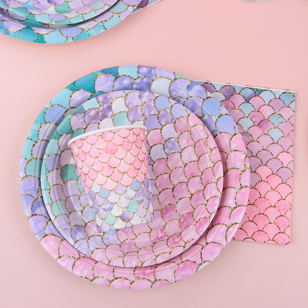 Birthday Decoration Supplies Little Mermaid Party Disposable Tableware Set Paper Plate Paper Cup