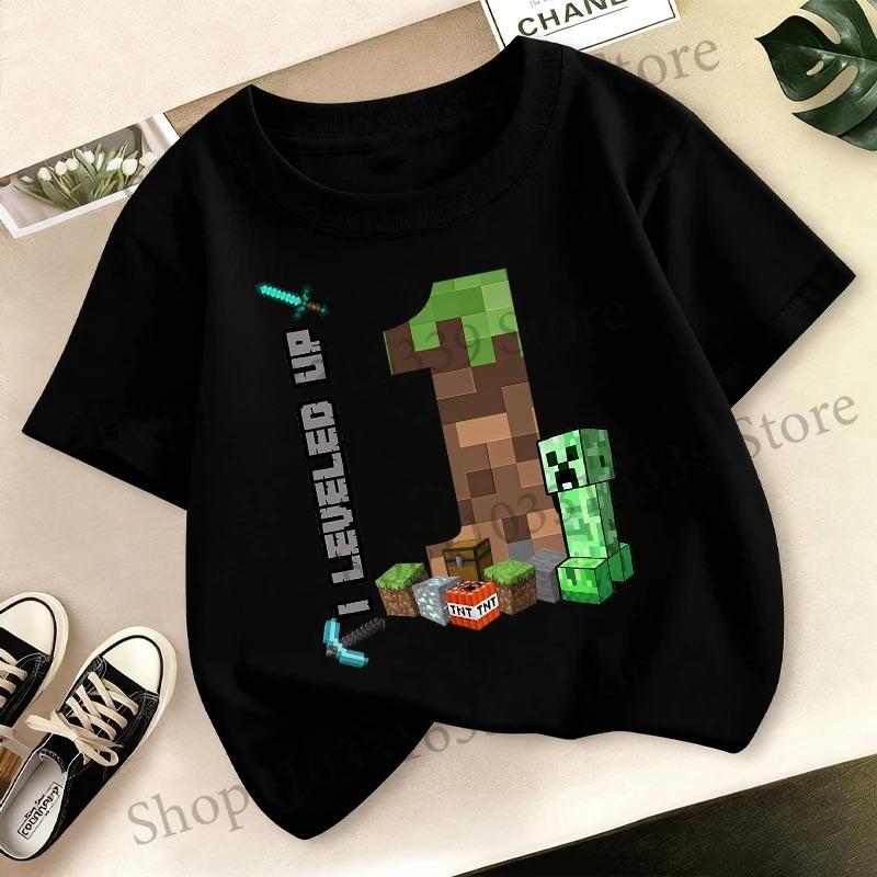 Футболка с числом на день рождения Товары для вечеринки Подарок Мультяшная в стиле Minecraft Детская одежда Топы для мальчиков Летние футболки с коротким рукавом с круглым вырезом