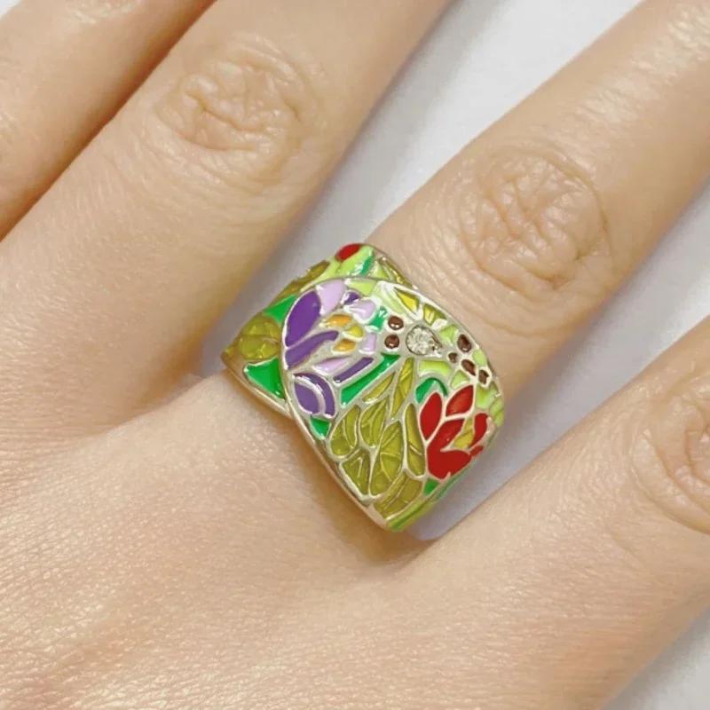 Кольцо в национальном стиле, цветная эмаль, ретро, инкрустация бриллиантами, универсальное, для мужчин и женщин, персонализированное, контрастный цвет