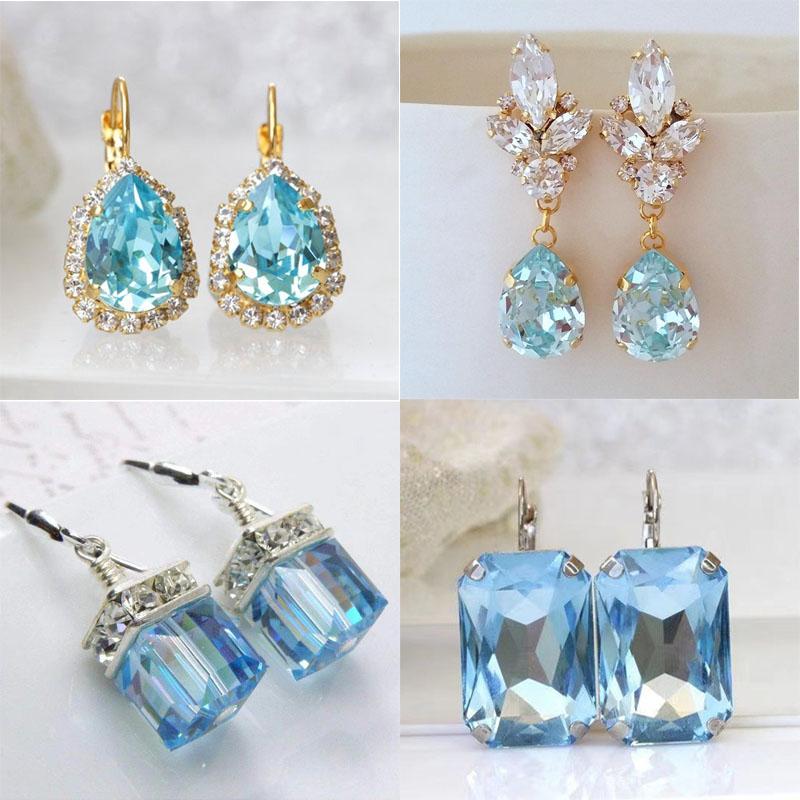 Lake Blue Water Drop Cubic Zirconia Earrings Women's High Quality Luxury Wedding To Attend The Banquet Shiny Wholesale