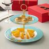 Yongfengyuan Madam Porcelain West Lake Blue 2-Tier Ceramic Dessert Stand