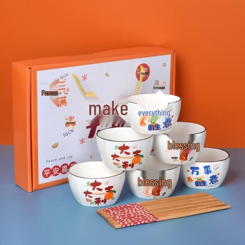 Jingmingli Fortune Ceramic Bowl & Chopstick Gift Set