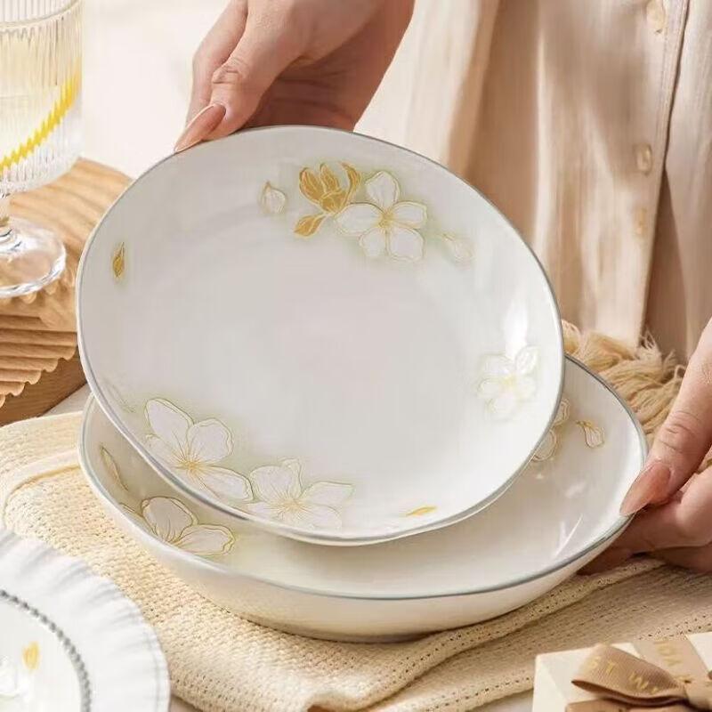 ZISIZ Gold Leaf Ceramic 14-Piece Dinnerware Set