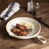 МодельКруглое 11-дюймовое мелкое блюдо молочно-белого цвета, покрытое печной глазурью