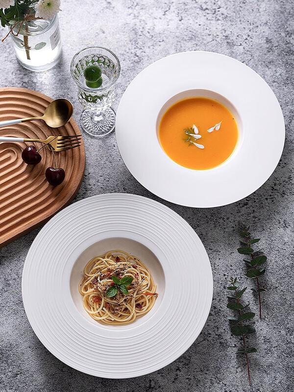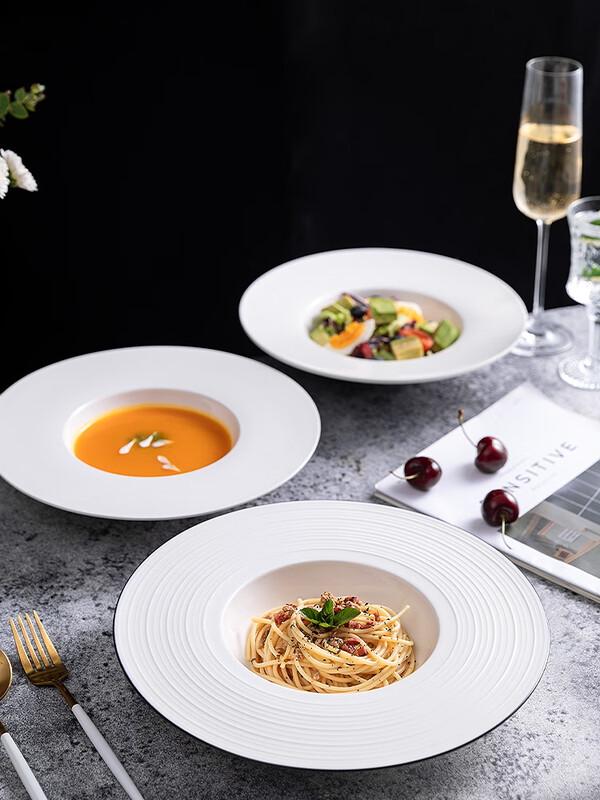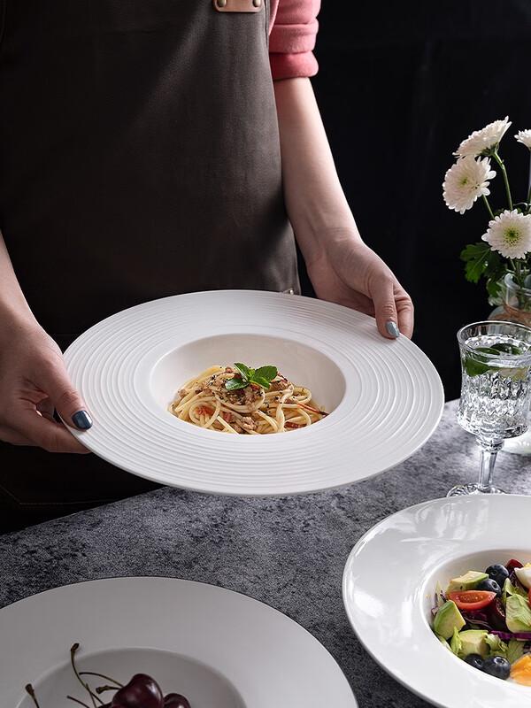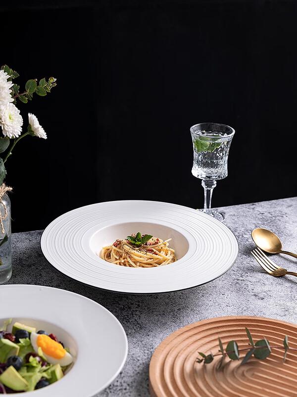 Wuhe 11.5-inch White Bone China Pasta Plate with Black Rim