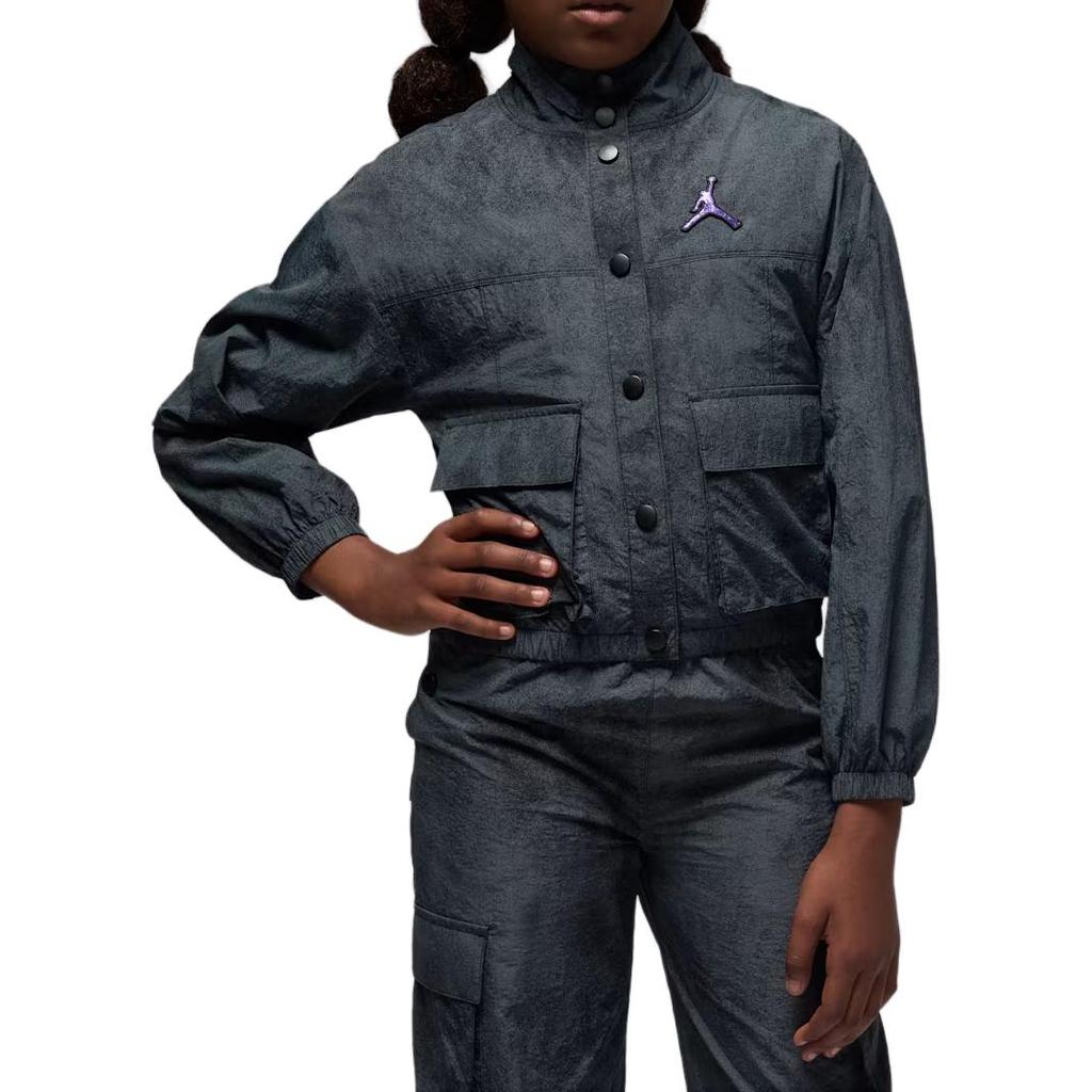 Jordan Jacket Blue Jeans And Bling Lightweight Logo Pocket Long Sleeve Loose Fit Kids jackets IO2481-010 — купить товар онлайн с бесплатной доставкой по всему миру!
