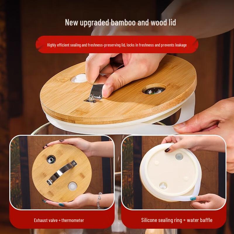 Glass Juice Dispenser with Bamboo Wood Base