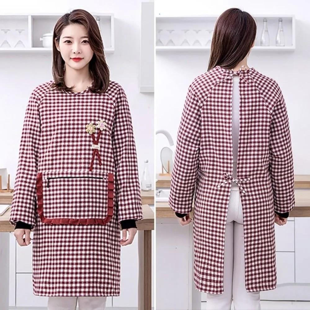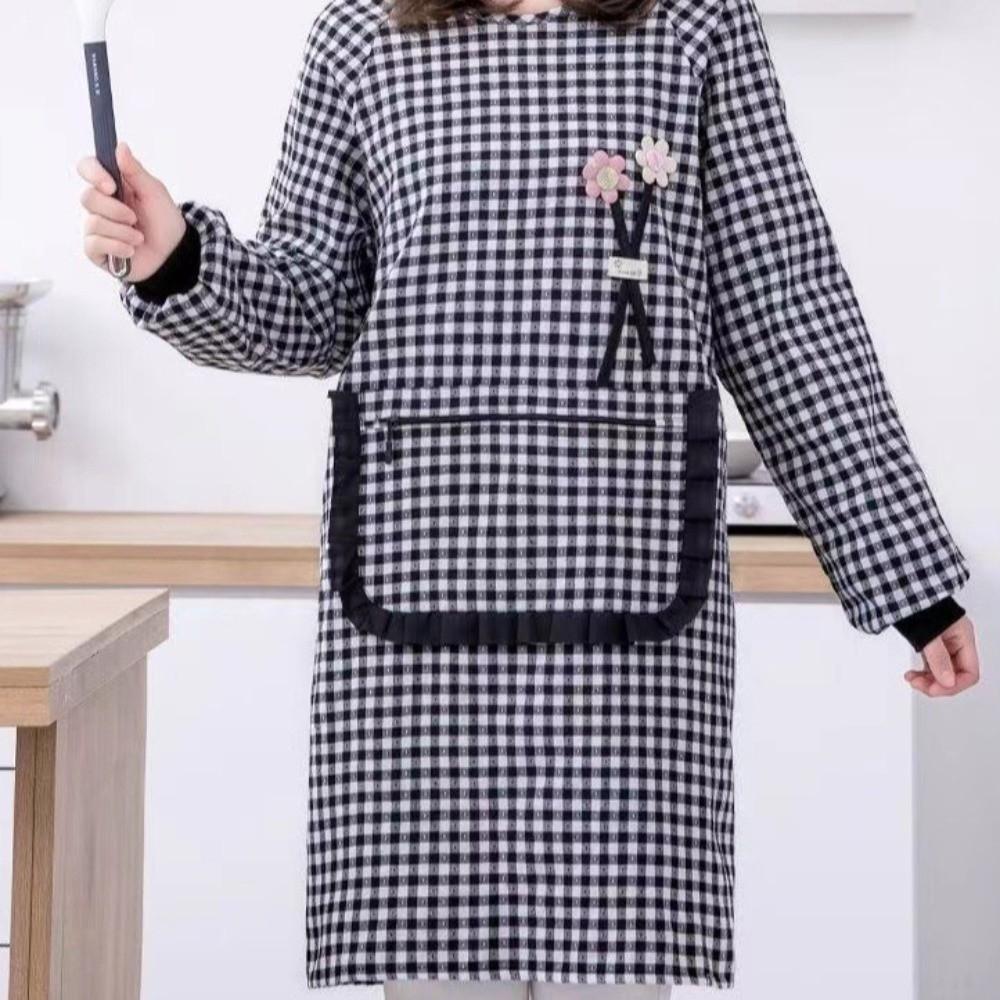 Водонепроницаемый фартук с длинным рукавом, клетчатый дизайн, фартук для мытья посуды и уборки, сад