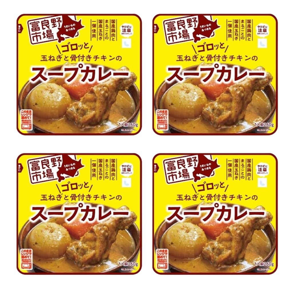 Суп-карри с луком с рынка Фурано с оригинальной наклейкой [Набор 4] Курица с костью, 260 г,