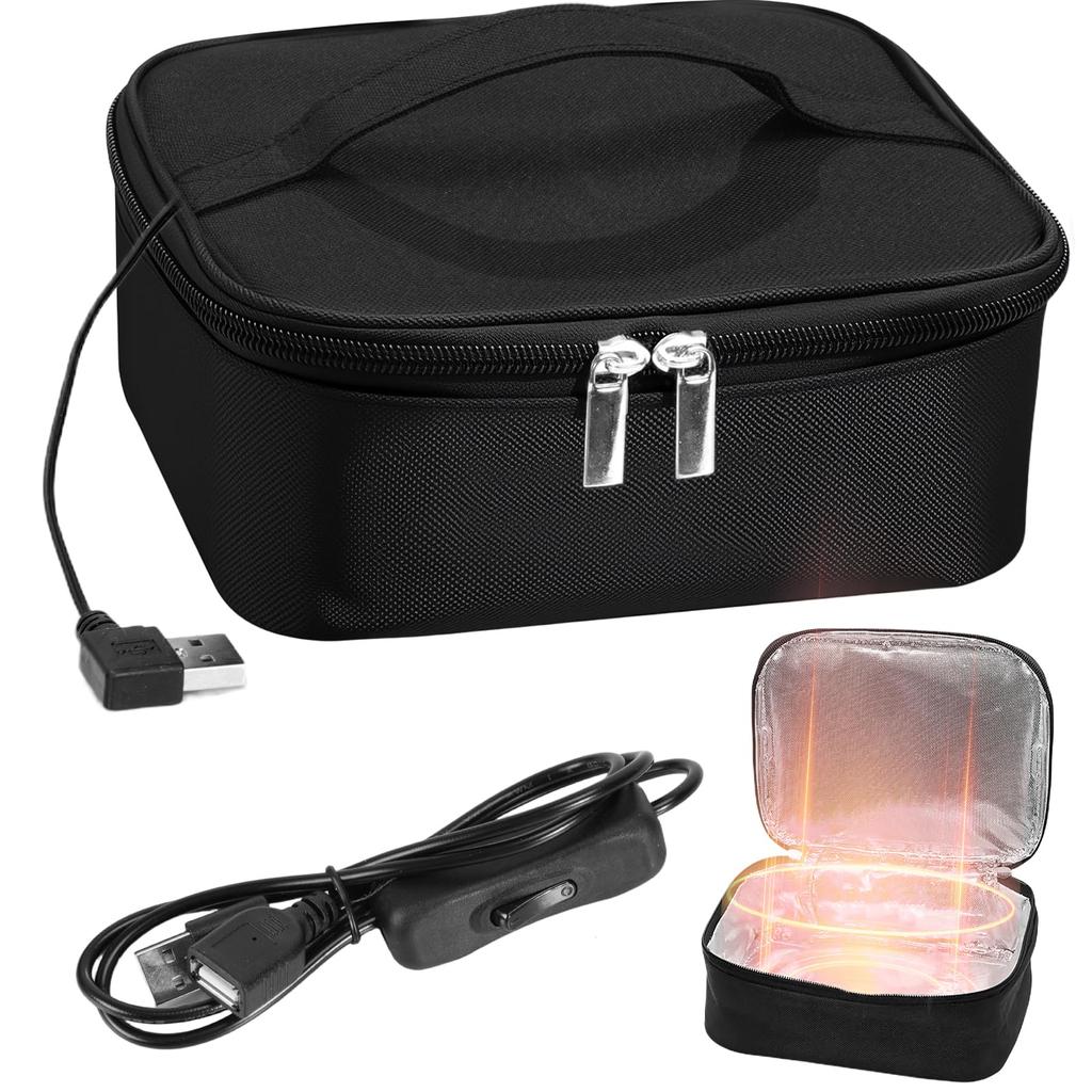 Insulated Lunch Bag with Built-in Heater, Heats up to 60°C, USB Powered, Keeps Food Hot or Cold, Large Capacity 2.5L, Water-Repellent, Insulated, Durable, Perfect for Commuting to Work or School, Simple and Convenient, Solid Black