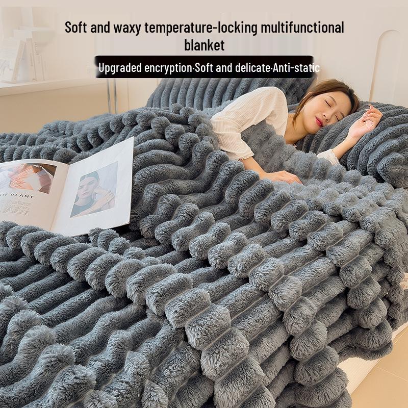 Теплое одеяло из плюша с кроличьим мехом и кораллового флиса: Утолщенное одеяло для зимы, весны и осени – идеально для общежития, односпальной или двуспальной кровати.