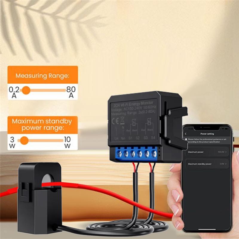 ABUO-Tuya Wifi 2 Gang Smart Energy Meter Kwh Power Monitoring Bidirectional Monitoring Meter APP Remote Control