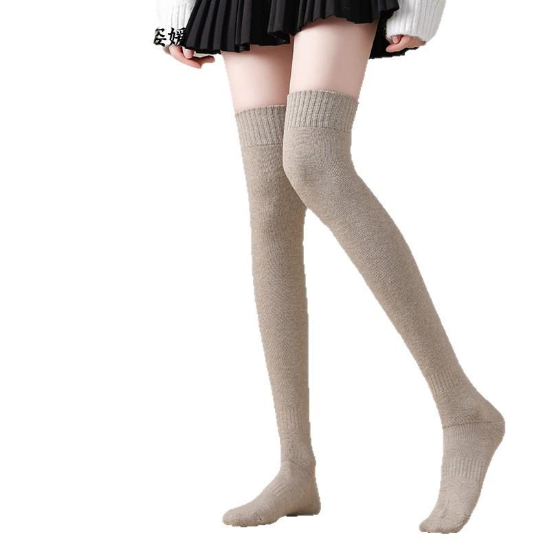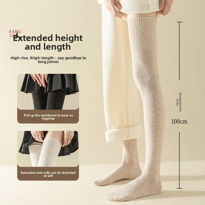 Длинные до бедра женские носки из чистого хлопка и флиса до колена для зимы - Гольфы до бедра
