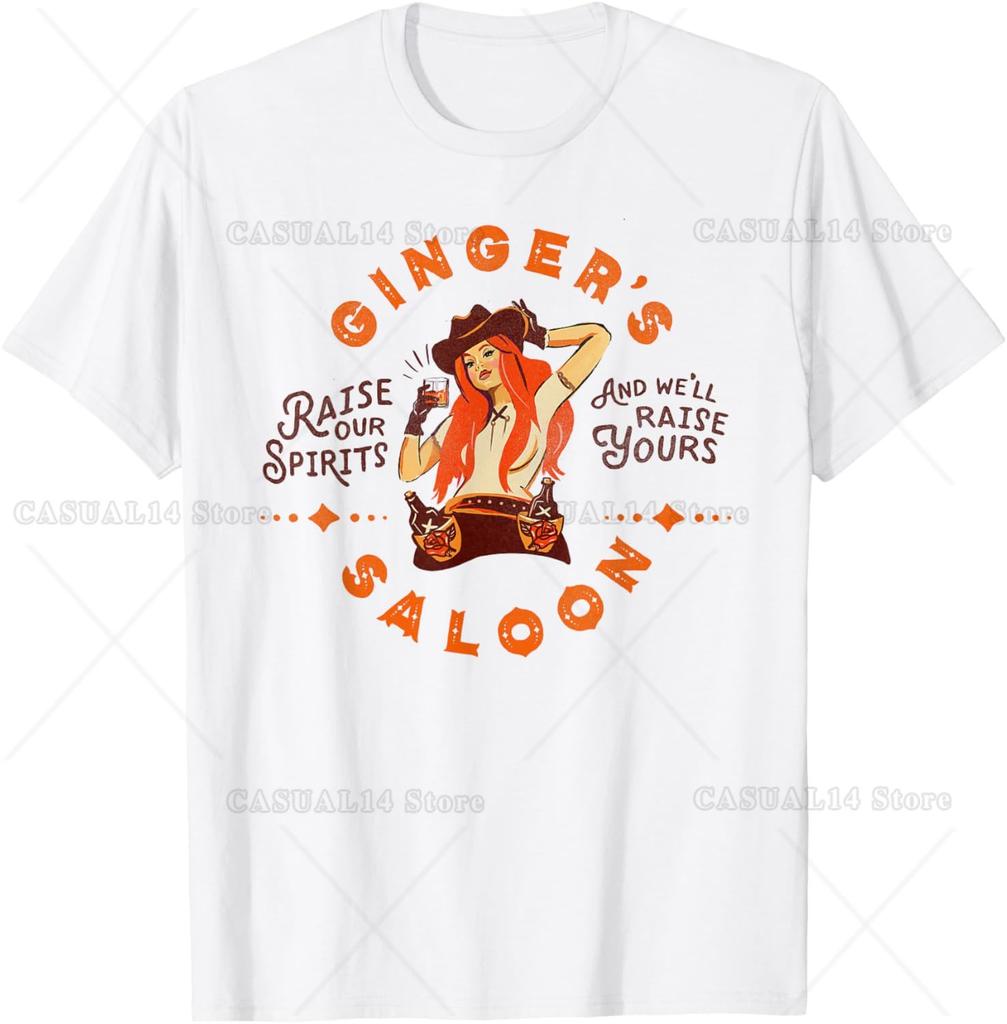Gingers Saloon Vintage Cowgirl Whiskey Redhead Dive Bar Artist Gift T-Shirt Cotton Short Sleeve — купить товар онлайн с бесплатной доставкой по всему миру!