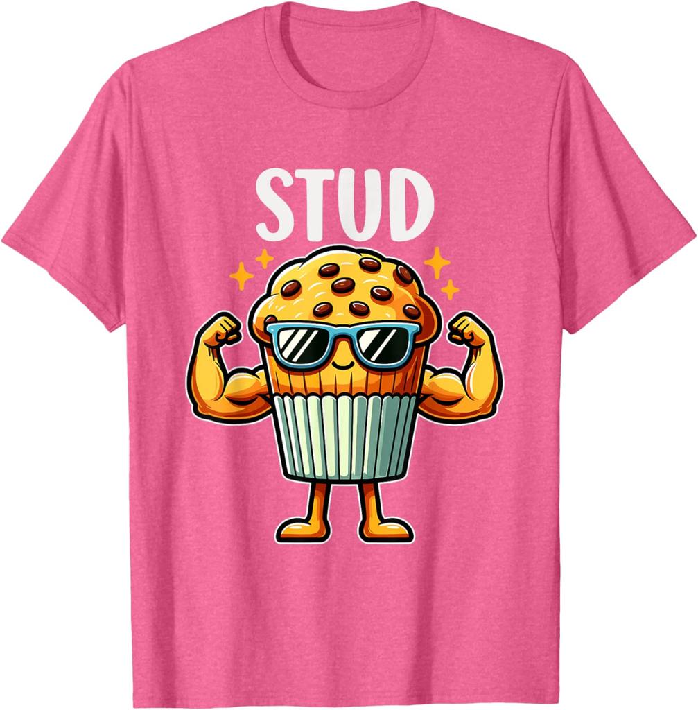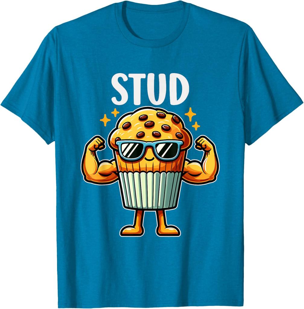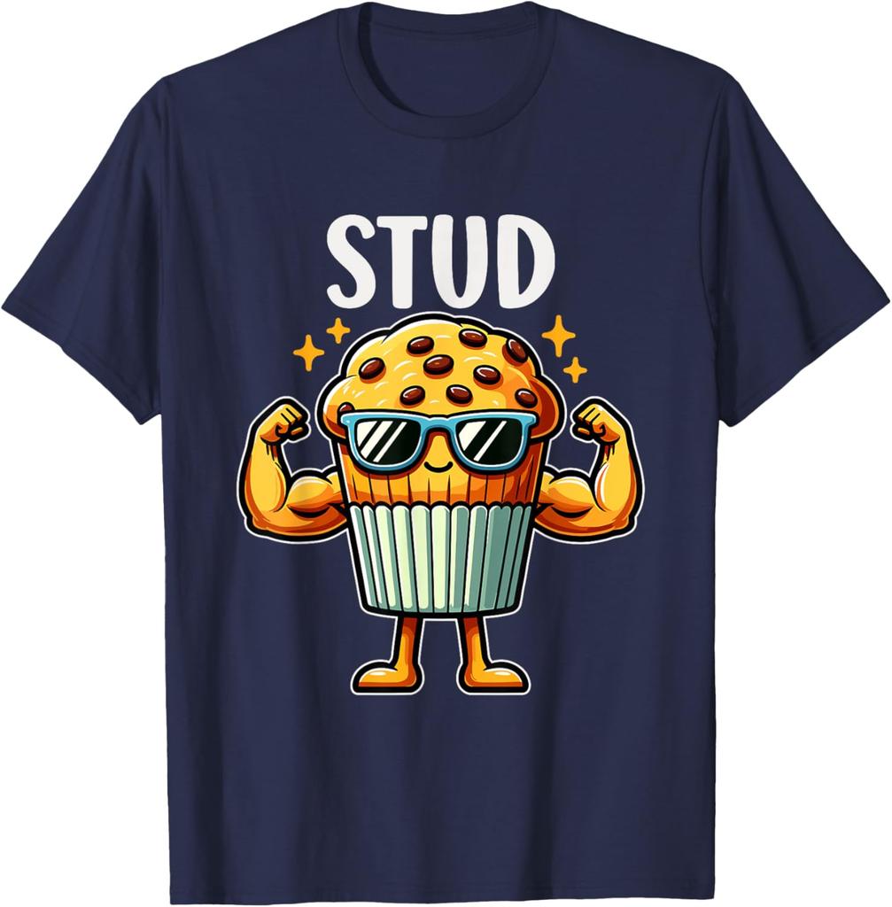 Stud Muffin Funny Muscle Food Pun Graphic Tee for Men Boys Casual Daily T-Shirt