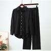 Women's Fashion Loose Elastic Wrinkled Long Sleeve Shirt Wide Leg Pants Casual Set 2-piece Set