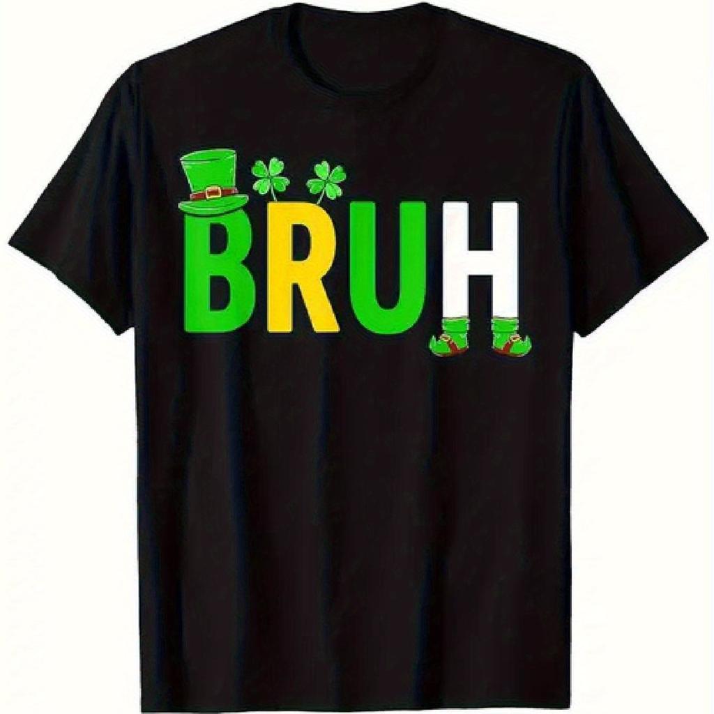 St Patricks Day BRUH Graphic Tee Men Casual Short Sleeve Cotton Crew Neck T-Shirt Holiday — купить товар онлайн с бесплатной доставкой по всему миру!