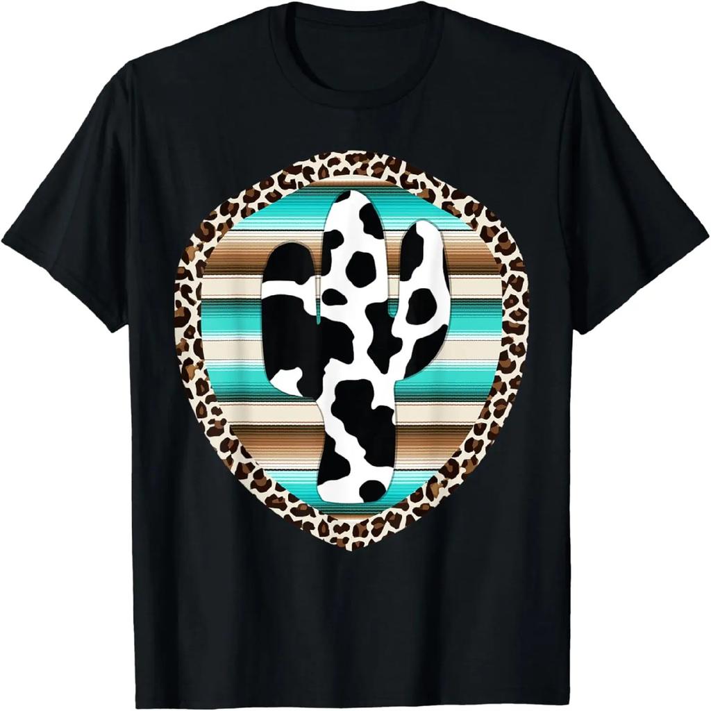 Serape cow print Cactus Leopard print Turquoise Brown T-Shirt