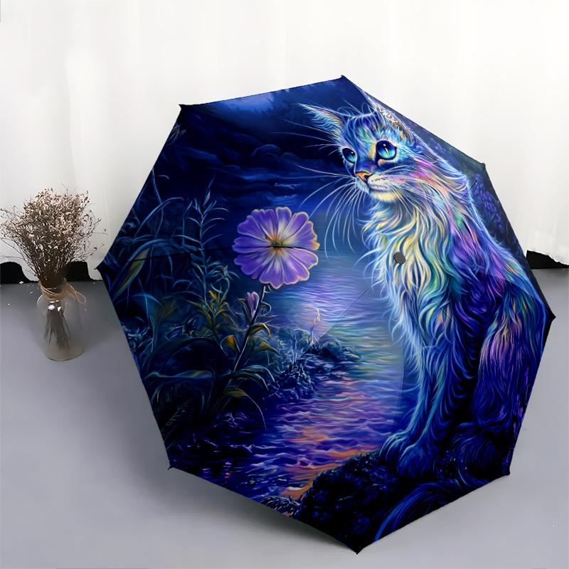 Узор 'Ночной кот', автоматический складной зонт, портативная и складная конструкция, 8 спиц, рождественский или праздничный подарок.