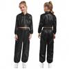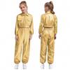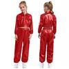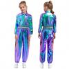 Детский танцевальный костюм для хип-хопа унисекс, куртка цвета металлик с длинными рукавами, отложным воротником и блестящими брюками