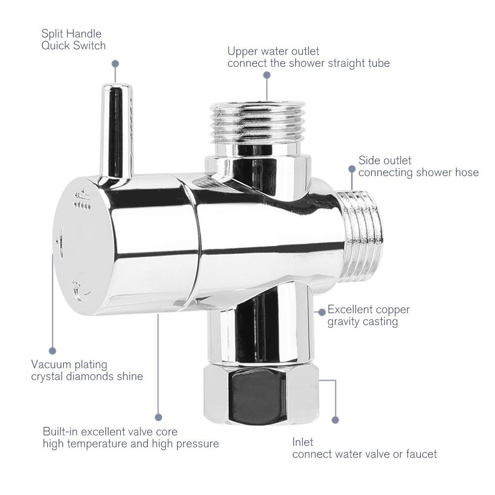 Diversion Valve Tap Anti-scratch Shower Head Diverter Valve Corrosion Resistant 3-Way Shower Arm Diverter for Fixed Spray Head
