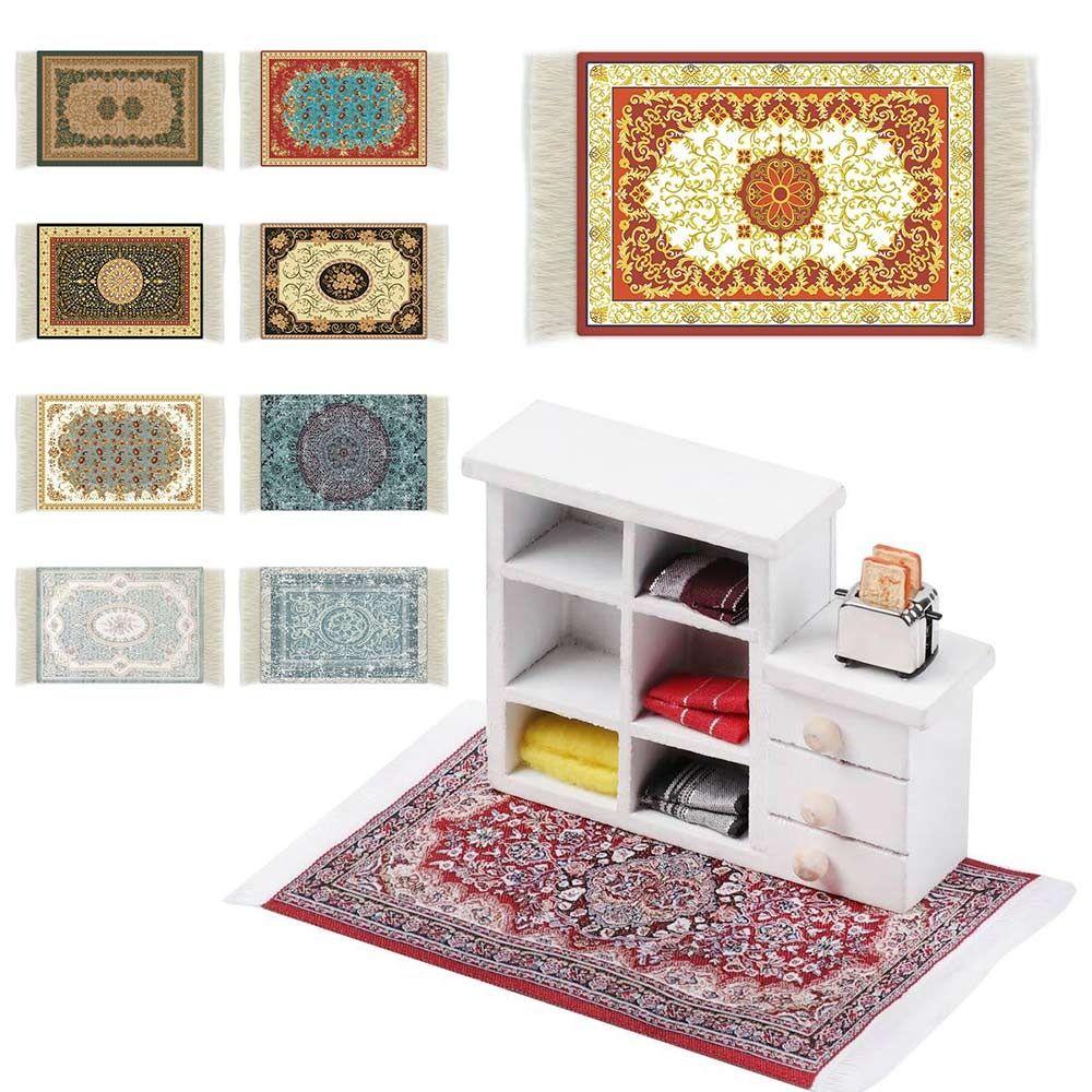 1/12 Dollhouse Carpet Multicolor Miniature Weaving Rug Gift Floral Pattern Cup Mat