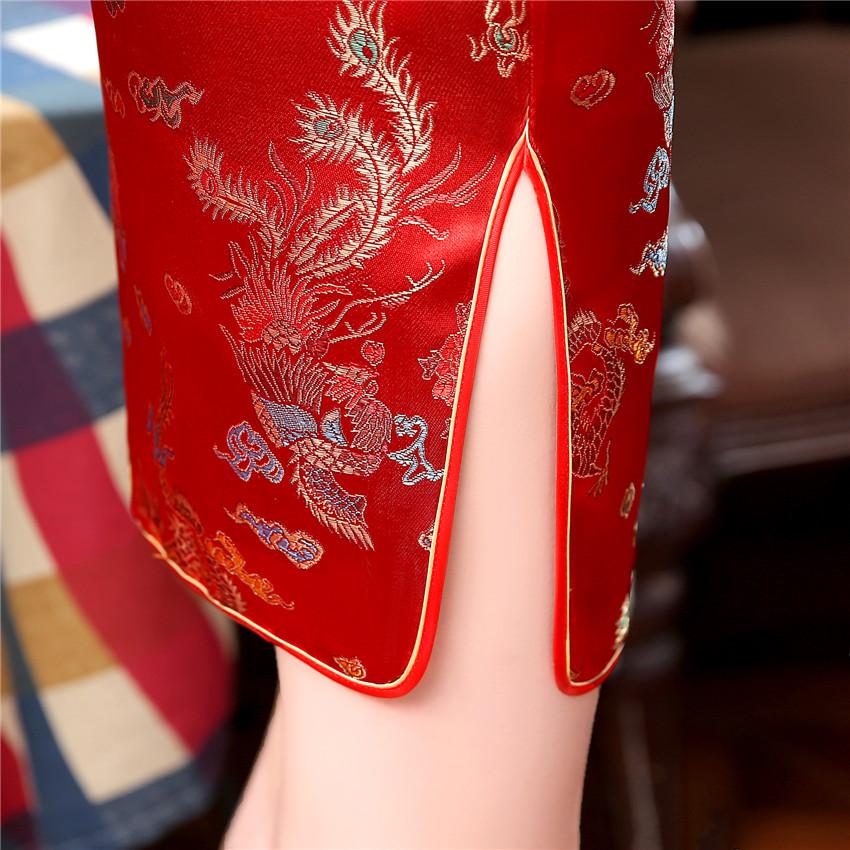 Кипао оверсайз Красный дракон Мини чонсам Женские атласные платья Платья в китайском стиле Винтажное платье кипао с воротником-мандарин