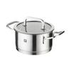 This Zwilling Moment 16cm saucepan is crafted from durable stainless steel, featuring a double-handle design for easy handling. It's versatile and compatible with both gas and induction cooktops, perfect for everyday cooking.