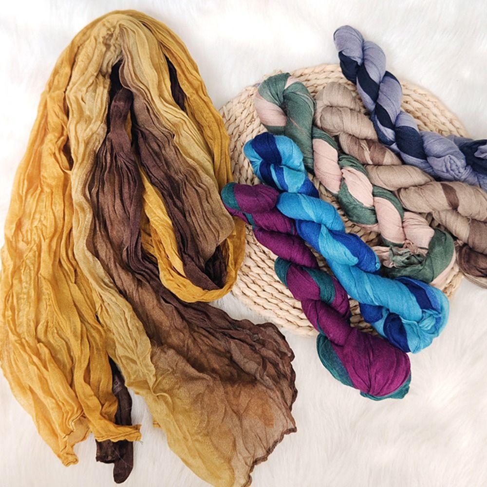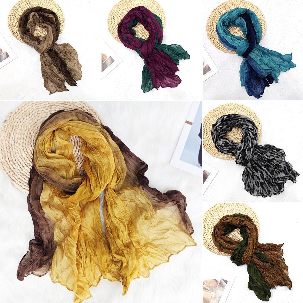 Gradient Blue Fold Shawl Soft Retro Cotton Hemp Scarf Fashionable Trend Sunscreen Scarf Women