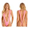 Сексуальный монокини с глубоким V-образным вырезом, цельный купальник для женщин, однотонный купальный костюм, облегающий, летний купальник