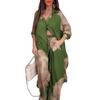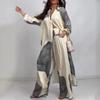 Женский комплект из длинной рубашки свободного кроя и брюк широкого кроя, повседневный костюм-двойка, бежевый с серым узором