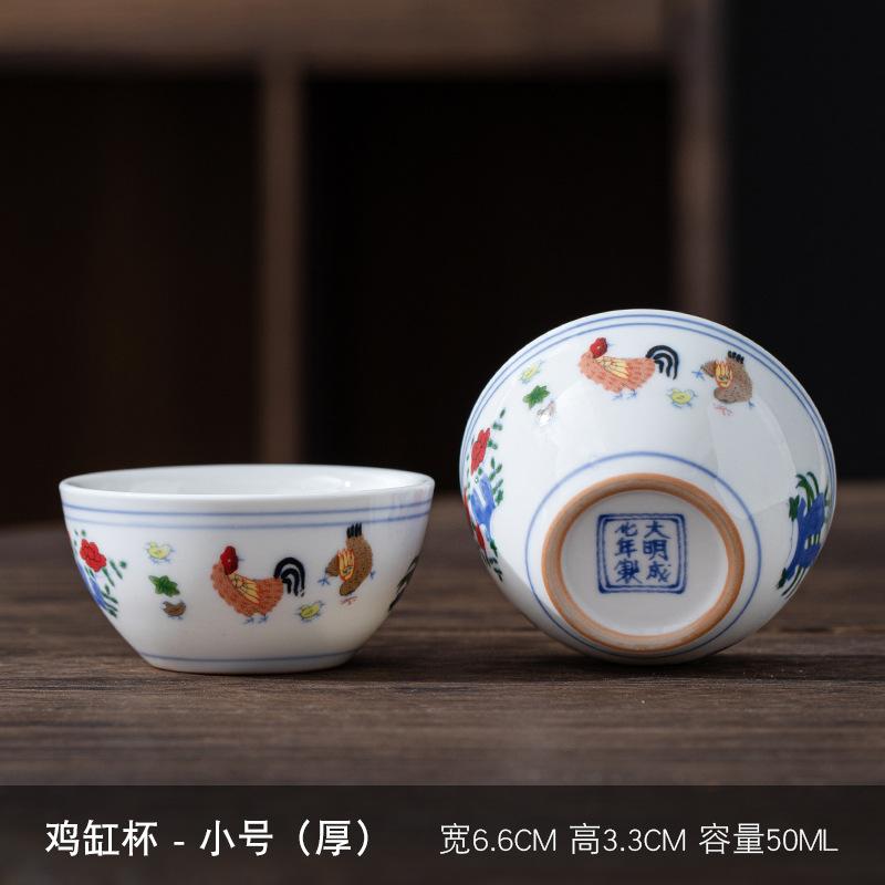 Antique Style Ming Chenghua Doucai Chicken Cup Kung Fu Tea Set Large Master Tasting Cup Wine Cup Small Gift White Porcelain Tea