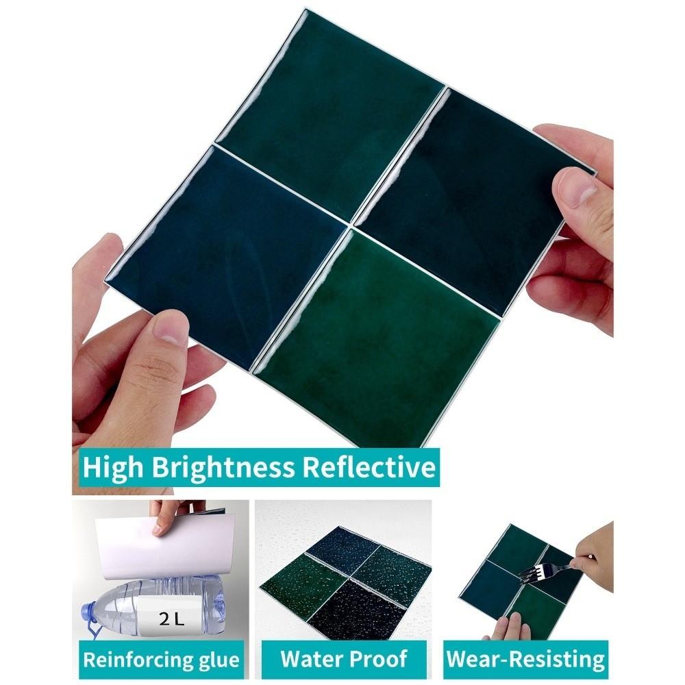 10Pcs Square Wall Stickers Solid Color Thickened Tile Stickers Retro Kitchen Wallpaper