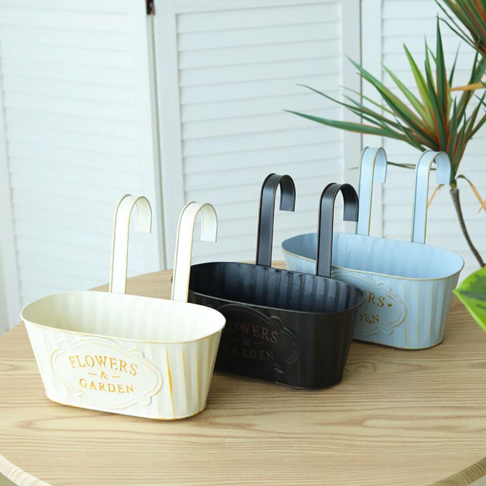Металлический ящик для растений с перилами, настенный, пасторальный, для цветов, новая садовая корзина