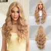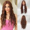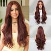 Женский коричневый парик с кружевной передней частью, ручной работы, длинный волнистый парик, пробор посередине, крупные волны, накладка для волос