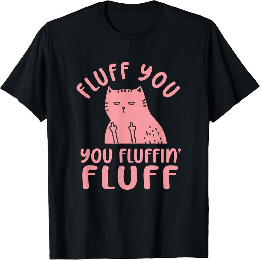 Смешная Уродливая Кошка Флаффин Флафф Кошка Показывает Средний Палец Мужская Женская Футболка