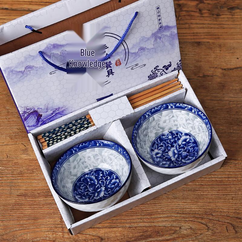 Hand-Painted Blue and White Porcelain Rice Bowl Gift Set — купить товар онлайн с бесплатной доставкой по всему миру!