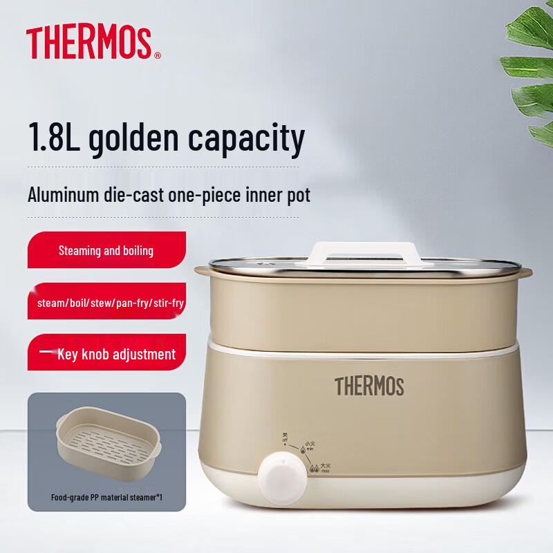 Эта многофункциональная электрическая кастрюля THERMOS EHA-4322A-M предназначена для удобного домашнего использования.. Обладая объемом 1,8 л, он сочетает в себе функции пароварки и мультиварки, что делает его универсальным для различных блюд.. Он оснащен прочной внутренней колбой из нержавеющей стали 304 и портативным дизайном, идеально подходящим для ежедневных кулинарных нужд.