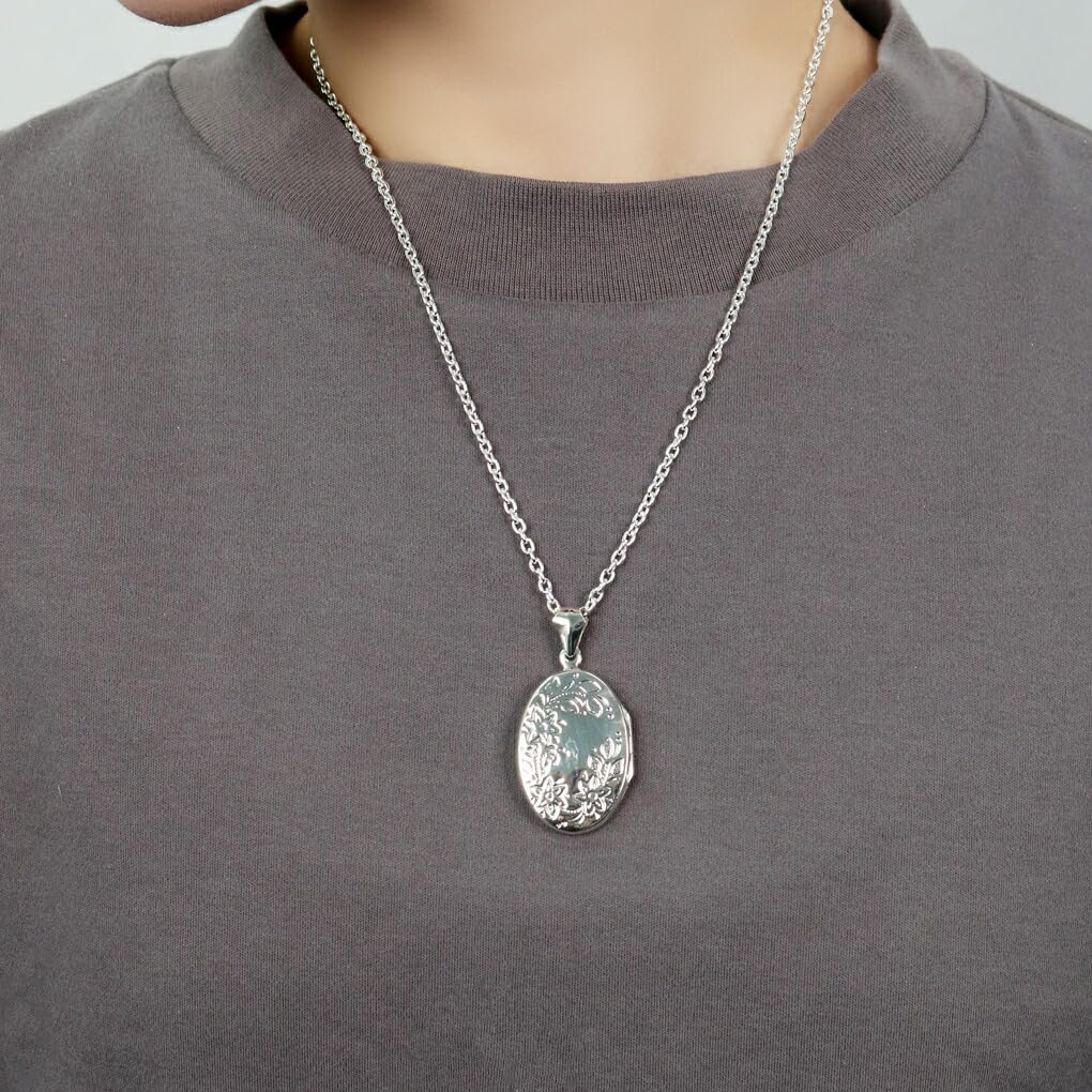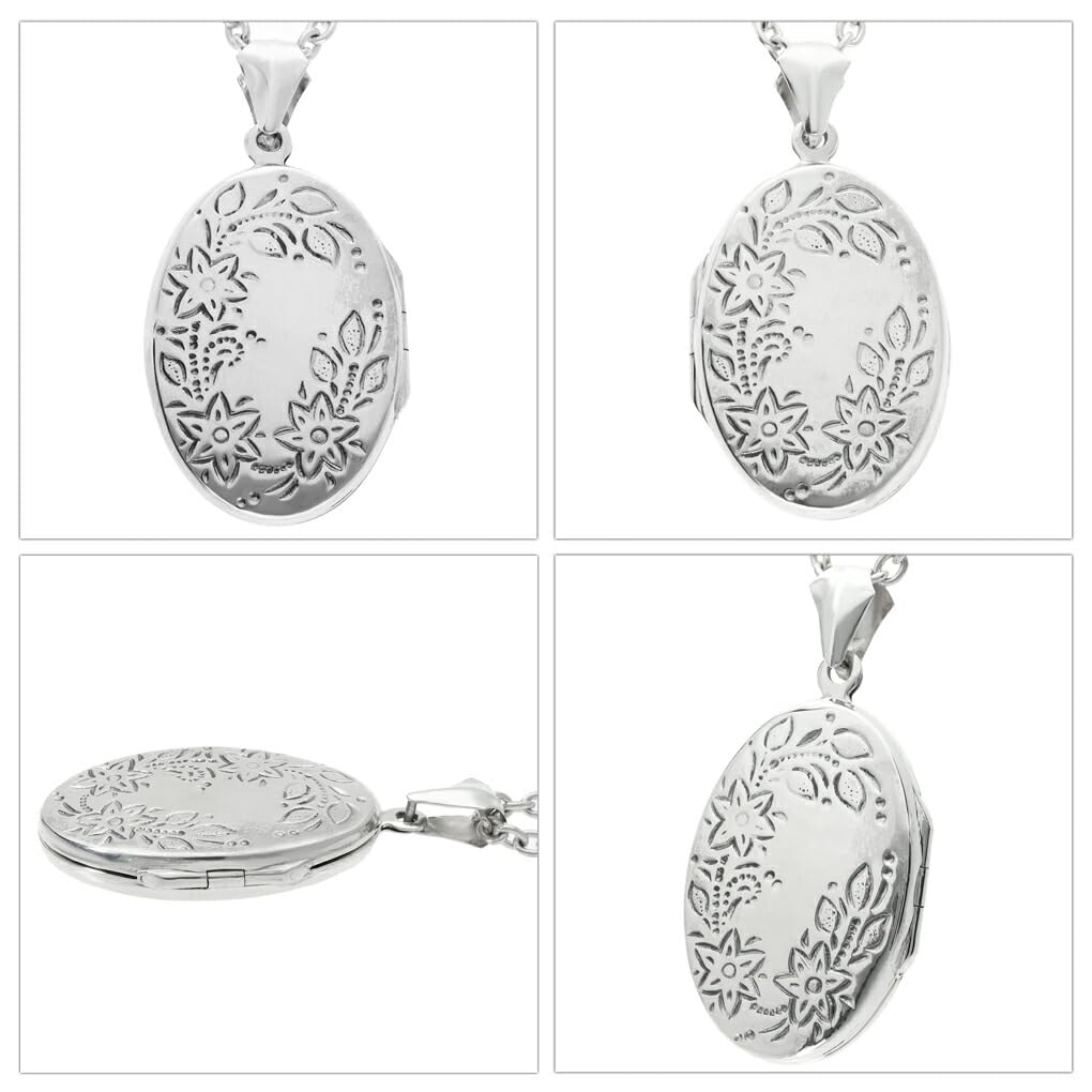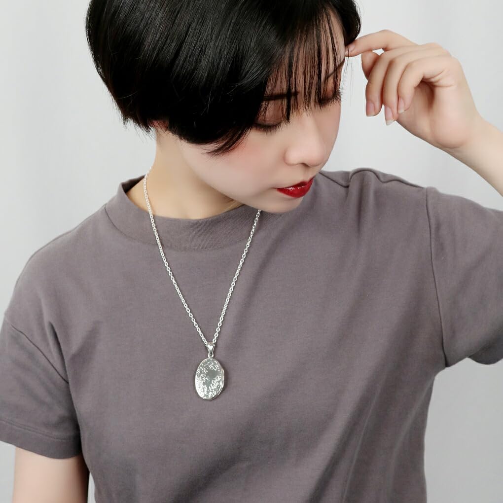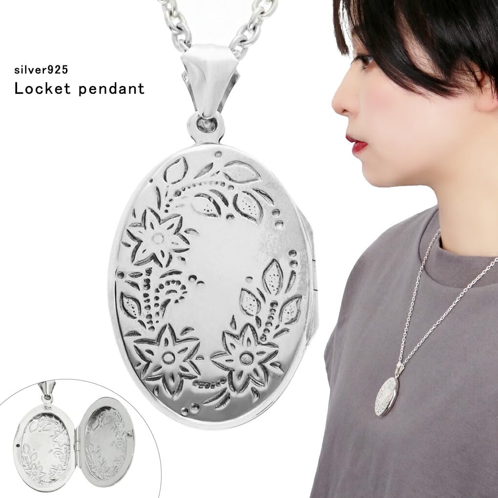 Gin no Oval Botanical Flower Decorative Pattern Locket Pendant Sterling Photo Holder [Shinjuku Kura] All-Over Top, Chainless, Charm, Silver, Engraved,