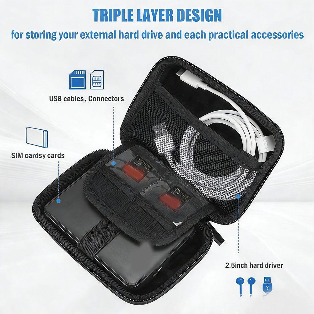 2.5inch SSD Case Water Resistant Shockproof Protective Bag Foam Lining Hard Shell External Hard Disk Case for Canvio Basics/WD