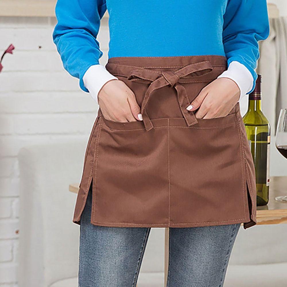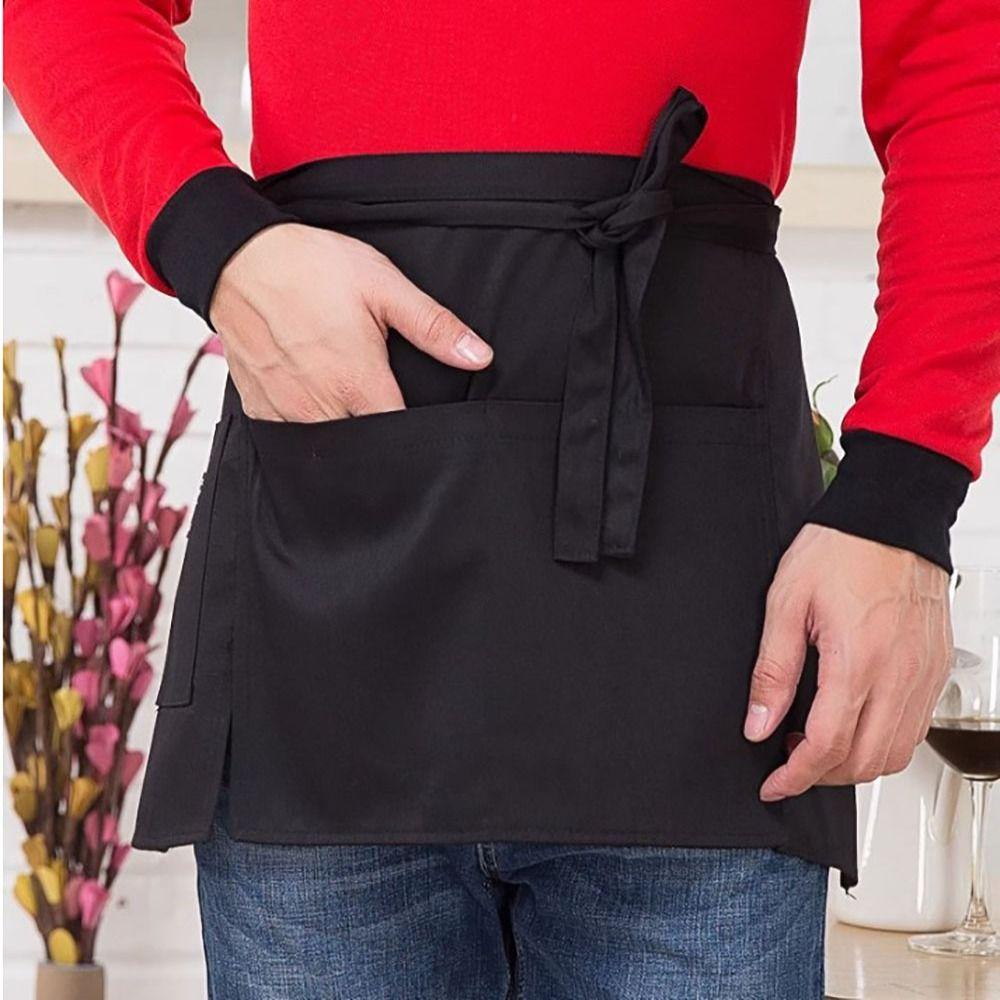 Новый дакроновый короткий полуфартук с завязками на талии, кухонный водонепроницаемый полуфартук, бар, паб, кафе, для готовки, грязеотталкивающий, рабочий фартук, женский, мужской