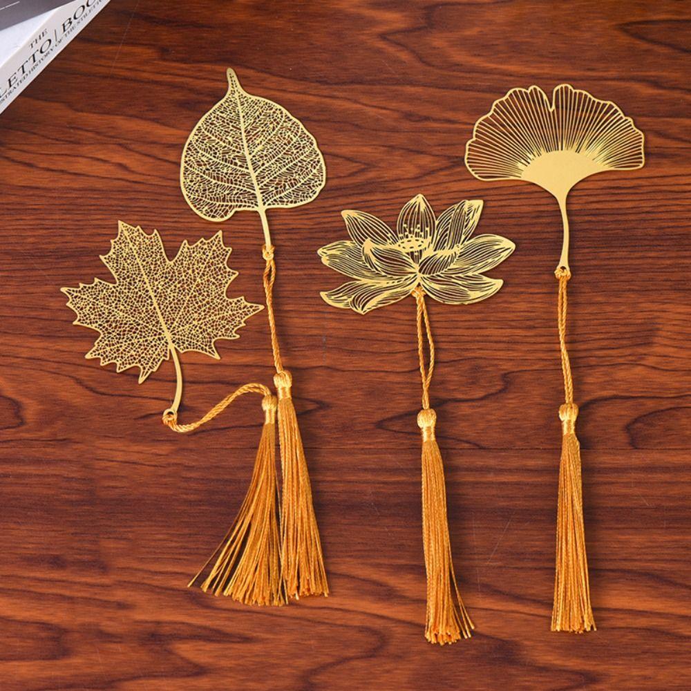 Tassels Metal Bookmark Leaf Vein Book Clip Classical Hollowed Out Bookmark Student Stationery