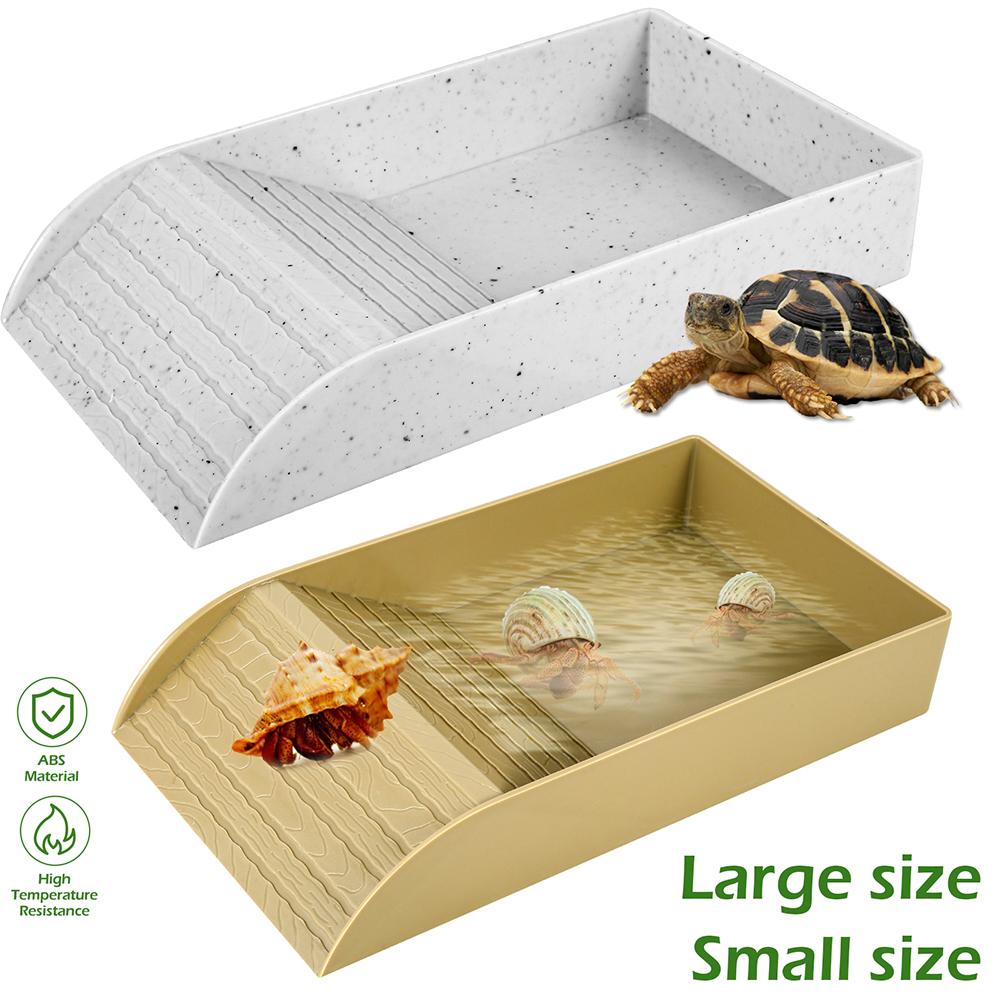 [Многоцелевое использование] Водопой для черепах с пандусом можно использовать для купания рептилий, в качестве террариума для рептилий или как миску для еды или воды, идеально подходит для различных рептилий, таких как черепахи, рогатые лягушки и ящерицы.