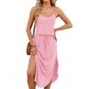 Женское модное летнее платье-сарафан яркого цвета, с круглым вырезом, без рукавов, на бретельках, с разрезом по подолу